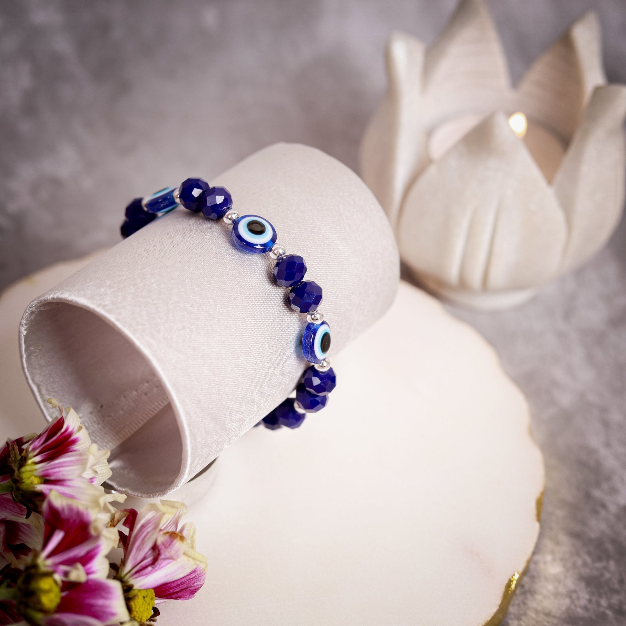 Navy Blue Crystals and Silver Beads with Navy Blue Evil Eye